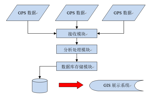 GPS數(shù)據(jù)接收存儲程序是整個GPS平臺的核心部分,數(shù)據(jù)接收和存儲的精確程度直接決定數(shù)據(jù)在GIS系統(tǒng)上的展現(xiàn)情況。因此該數(shù)據(jù)接收存儲程序需要同時處理上千甚至上萬條GPS終端報送的數(shù)據(jù),對程序的健壯性、穩(wěn)定性有很高的要求。系統(tǒng)設(shè)計中將采用成熟的多線程處理和滑動門技術(shù)進行設(shè)計,提高系統(tǒng)性能。GPS數(shù)據(jù)接收流程如下: